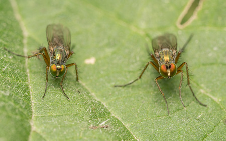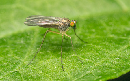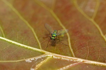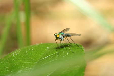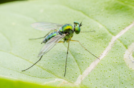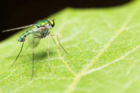 Dolichopodidae (long-legged flies) live in the leaves and grasses with small, green bodies, metal, adult predators. Eat other small insects for food