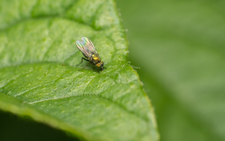 Fly, Chrysomya megacephala (Fabricius) on the leaf