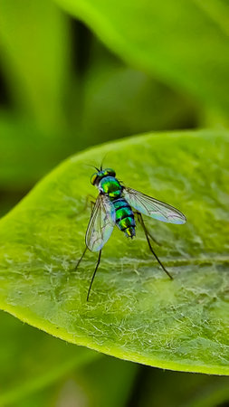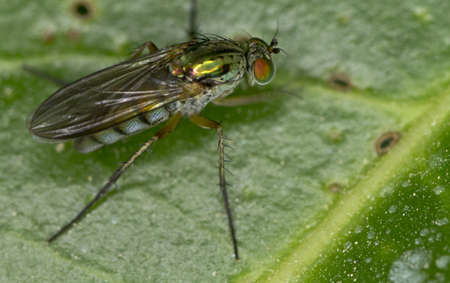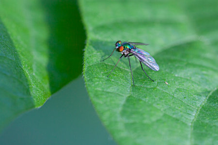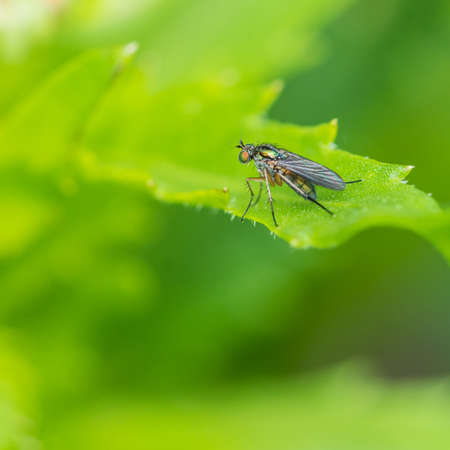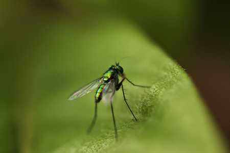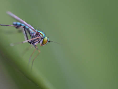 Macro photo of a Dolichopodidae fly, insect, stock photo