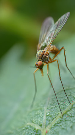 Macro Photography of Beautiful Long-Legged Fly on Green Leaf