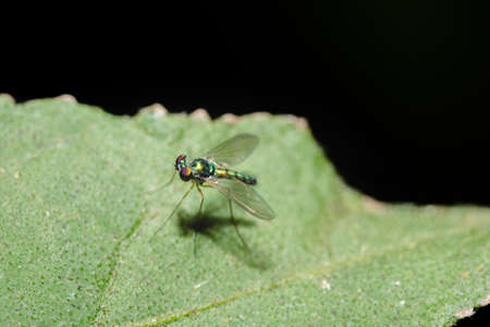 Stilt-Legged Flies on the leaves are insects that are small, slender.