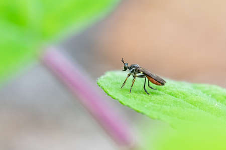 Macro shot of a robber fly in the garden