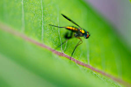 Macro photo of a Dolichopodidae fly, insect, stock photo