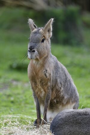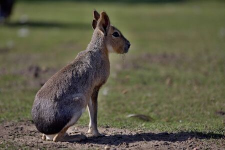 Wild Patagonian Mara, Dolichotis patagonum, sitting on a grass in the zoo