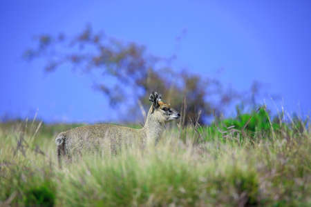Cute and Small Antelope Klipspringer jumping on the Simien Mountains near Gondar, Ethiopia