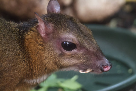 A rare and beautiful lesser malayan mousedeer with tiny tusks.