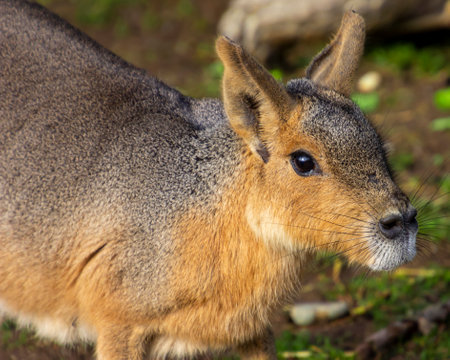 Close up view of a Patagonian mara (Dolichotis patagonum).