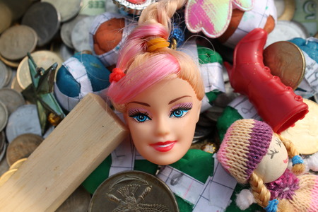 Old Doll. Concept: Abandoned Person. Close up an old broken doll