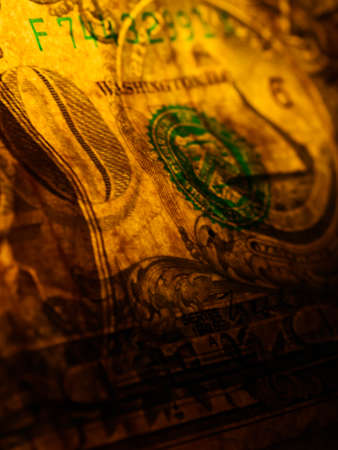 Selective focus on detail of dollars banknotes. Close up macro detail of money banknotes, dollars isolated. World money concept, inflation and economy concept