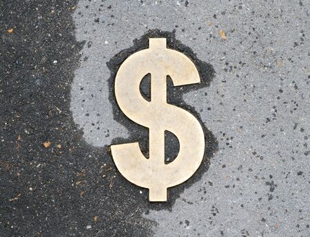 dollar sign on wet asphalt