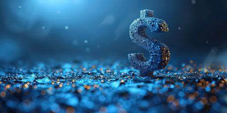 A vibrant dollar sign sparkles in blue and orange glitter against a dark backdrop, creating a captivating visual effect.