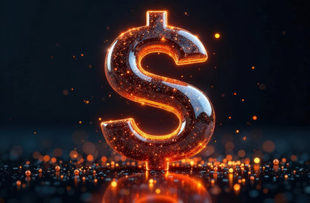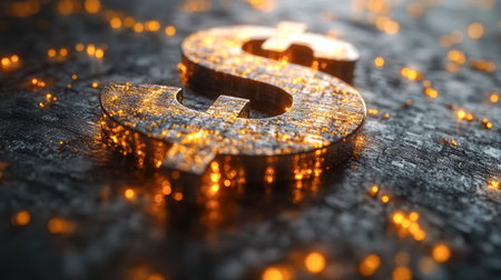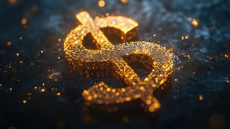 Shiny dollar symbol on a glittery background, symbolizing wealth, finance, and economic success with a sparkling effect.