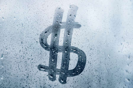Abstract dollar sign as a symbol of wealth on a misted window.