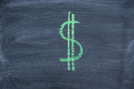 Drawing of the Dollar symbol in green chalk on a black chalk board