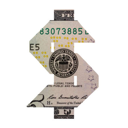 This artistic representation of a dollar sign combines 3D rendering with textured crumpled bills, symbolizing financial concepts related to wealth and investment.