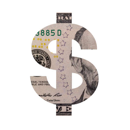 US Dollar Sign Icon with Real One Dollar Bill Banknote Texture Isolated on White Background