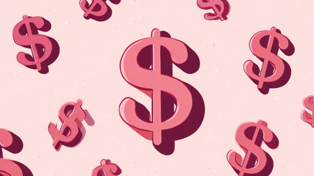 This image features numerous pink dollar signs arranged against a light pink background. The design employs simple shapes and smooth gradients. The arrangement may be suitable for financial concepts or business presentations. It can be used for various commercial purposes or editorial needs.