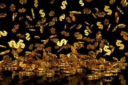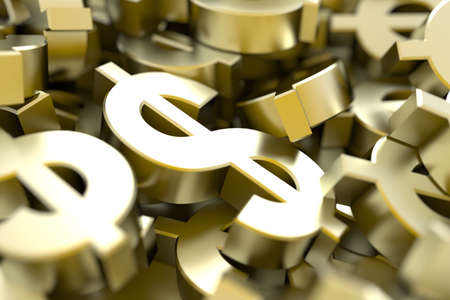 3D Rendering,A lots of Golden Dollars Currency symbols on white background