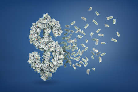 3d rendering of dollar bills floating in the air and forming a shape of a big dollar sign.