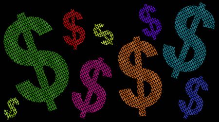 Currency Dollar symbol pattern on a black background. Monitor texture view