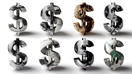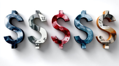 A visually striking representation of dollar signs featuring various textures and designs. This image embodies concepts of finance, wealth, and currency exchange, perfect for articles and advertisements related to money and investment.