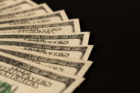 Money and Financial Concept. Closeup of 100 US Dollar banknote on black background.