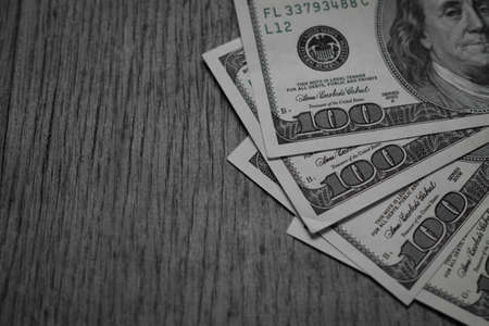 Dollars banknotes on a dark background. Selective focus.
