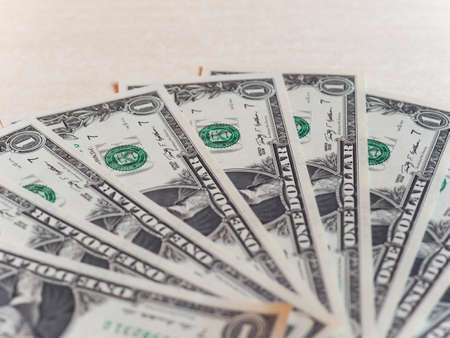 Financial, banking or savings concept. Close up of US Dollar banknotes.