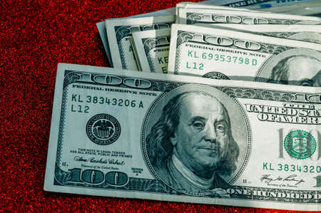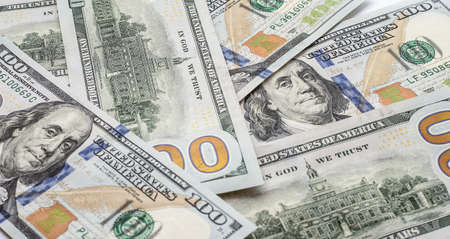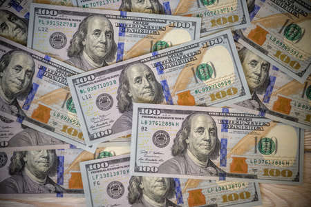 American cash dollars close-up. One Hundred Dollar Banknotes. Soft focus image.
