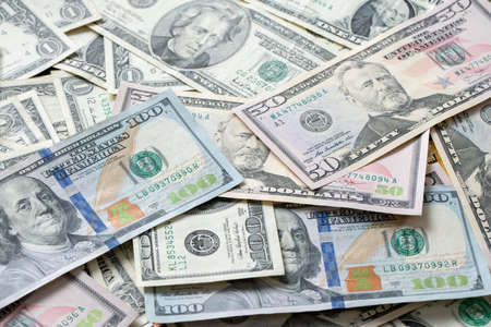 Dollars different bills. Dollars background. Background of different us dollar banknotes. Finance concept.