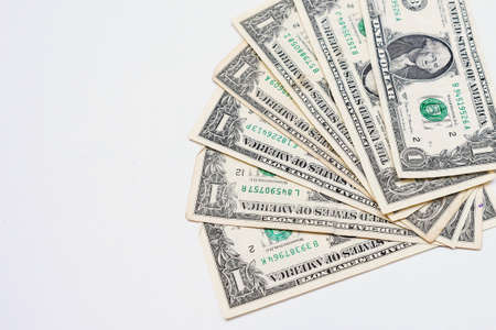 US american dollar money bills spread on white background