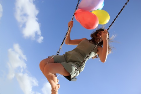 beautiful young woman on a swing on summer day outdoors