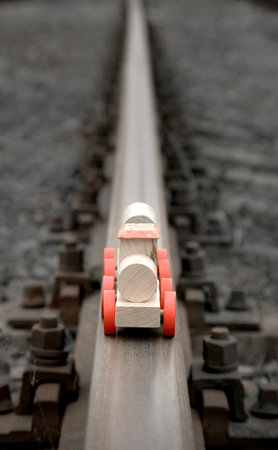 Colorful toy trains in motion on the tracks, miniature locomotives moving gracefully