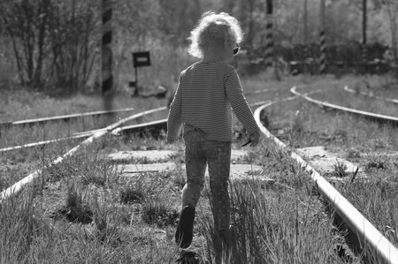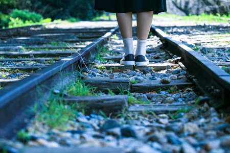 Landscape of an old abandoned railway in fall. Warm light, sustainable traveling