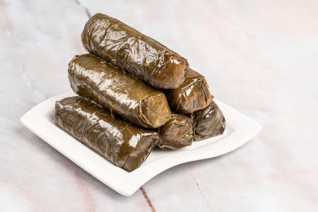 Stuffed grape leaves Yaprak Sarma traditional Turkish food close up view