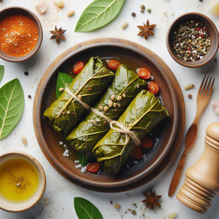 Stuffed Grape Leaves with Tomatoes, Herbs and Spices