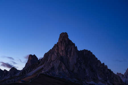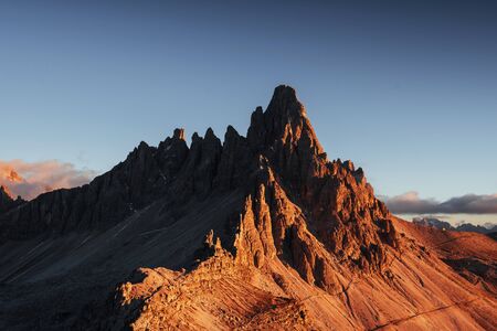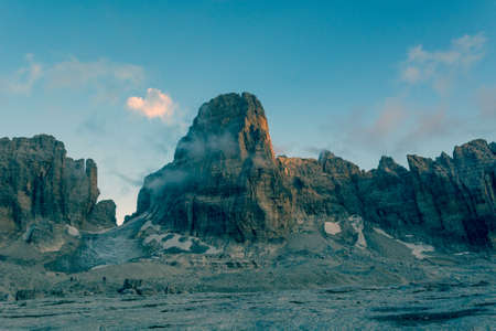 Photo of the big dolomite mountain of Paternkofel at sunset time.