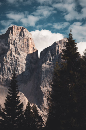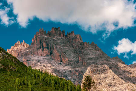 Pomagognon mountain ridge panorama in Dolomites, Italy