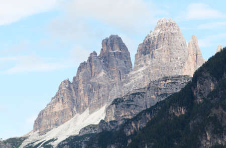Dolomites Alps rocky mountain range at Tre Cime Di Lavaredo.
