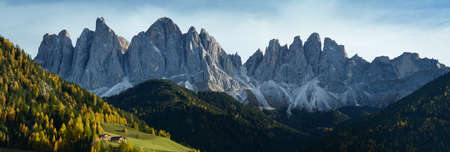 The beautiful Dolomites group of Odle in the Natural Park of Odle-Puez, Val di Funes. Bolzano, South Tyrol Italy