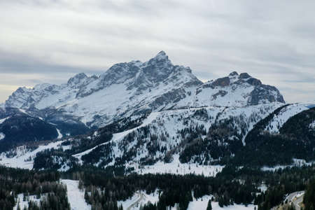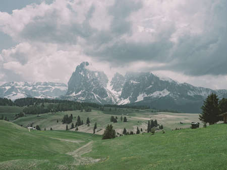beautiful landscape. overcast day Dolomites mountains view at the cloudy day, Italy