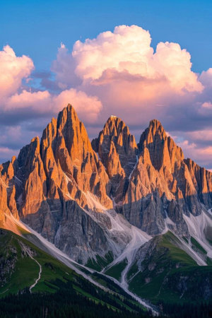 Dolomites mountains at sunset, Italy. Colorful summer landscape