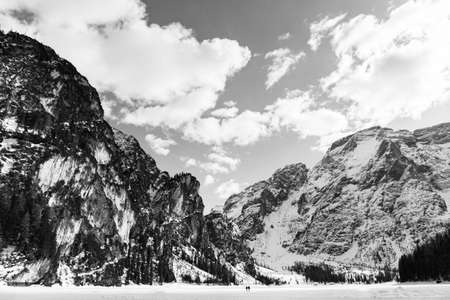 The beauty of the Dolomites in a black and white photograph, the Cristallo group in the center. Infrared photo