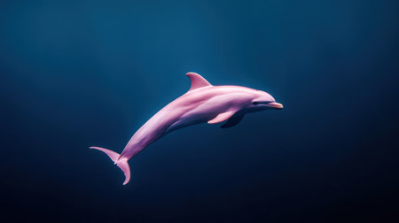 A stunning pink dolphin swims gracefully in the deep blue ocean, capturing the serene beauty of marine life. This image highlights the elegance and playfulness of a unique species.