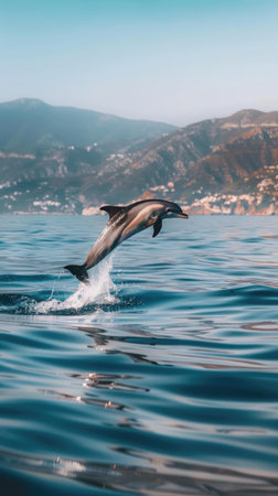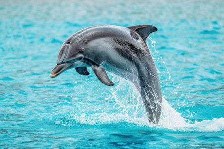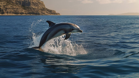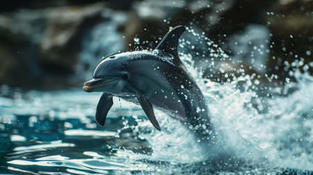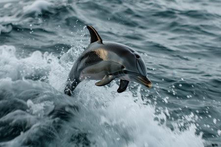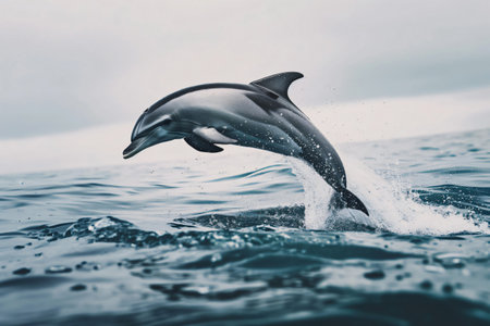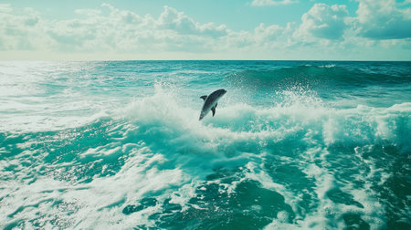Exhilarating photo capturing a dolphin gracefully leaping from the ocean waves, showing the beauty of marine wildlife in motion