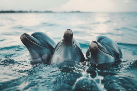 A group of dolphins playing and swimming together in the ocean created with Generative AI