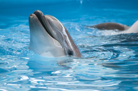 Cute young smiling dolphin in the dolphinarium