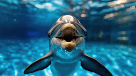 soft skin of the dolphin, the splashes of water and the dynamics of the jump. generative ai