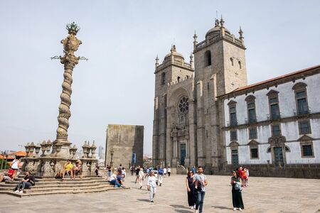 Porto, Portugal - September 16, 2018 : Busy afternoon together The Oporto Cathedral, located in the heart of Oporto's historic center, is one of the oldest and most important monuments in Portugal.