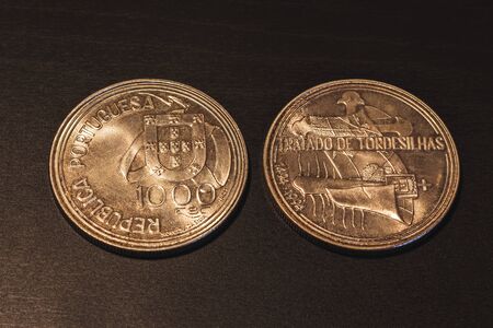 Real (BRL) - Money from Brazil. Money, Reais, Brazilian Real, Brazil. Brazilian coins in close up.